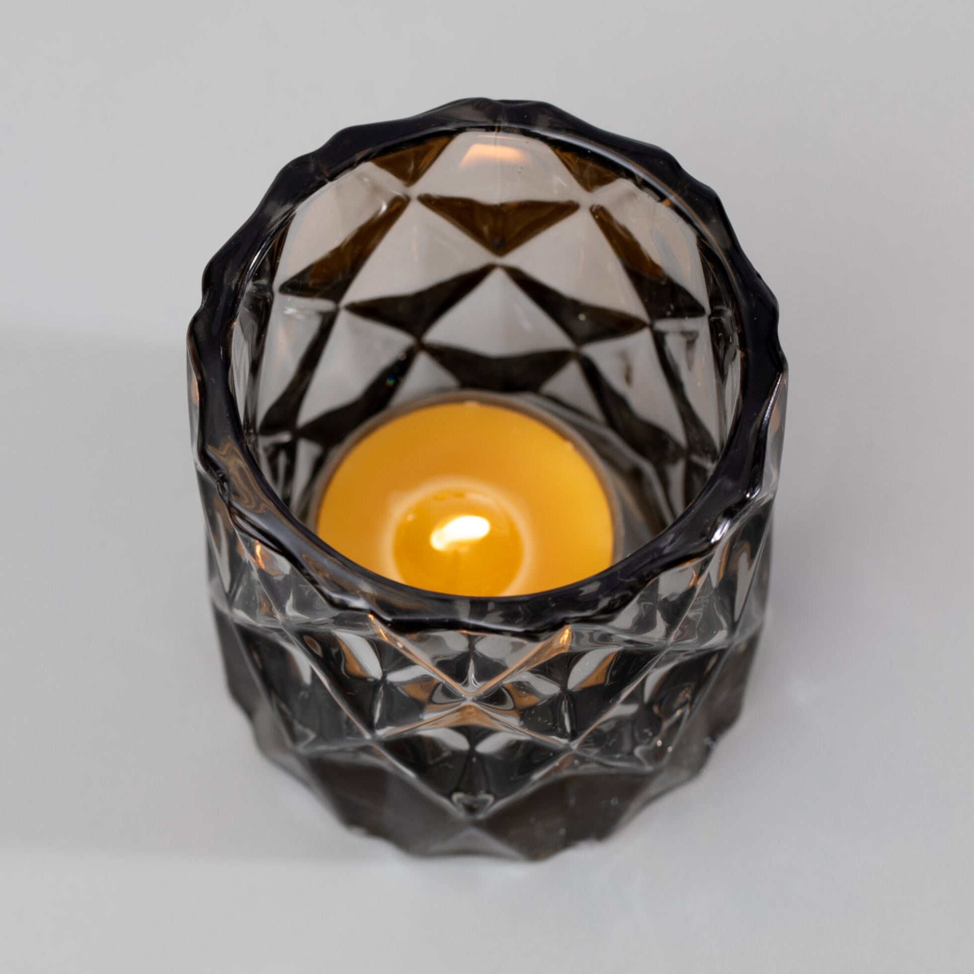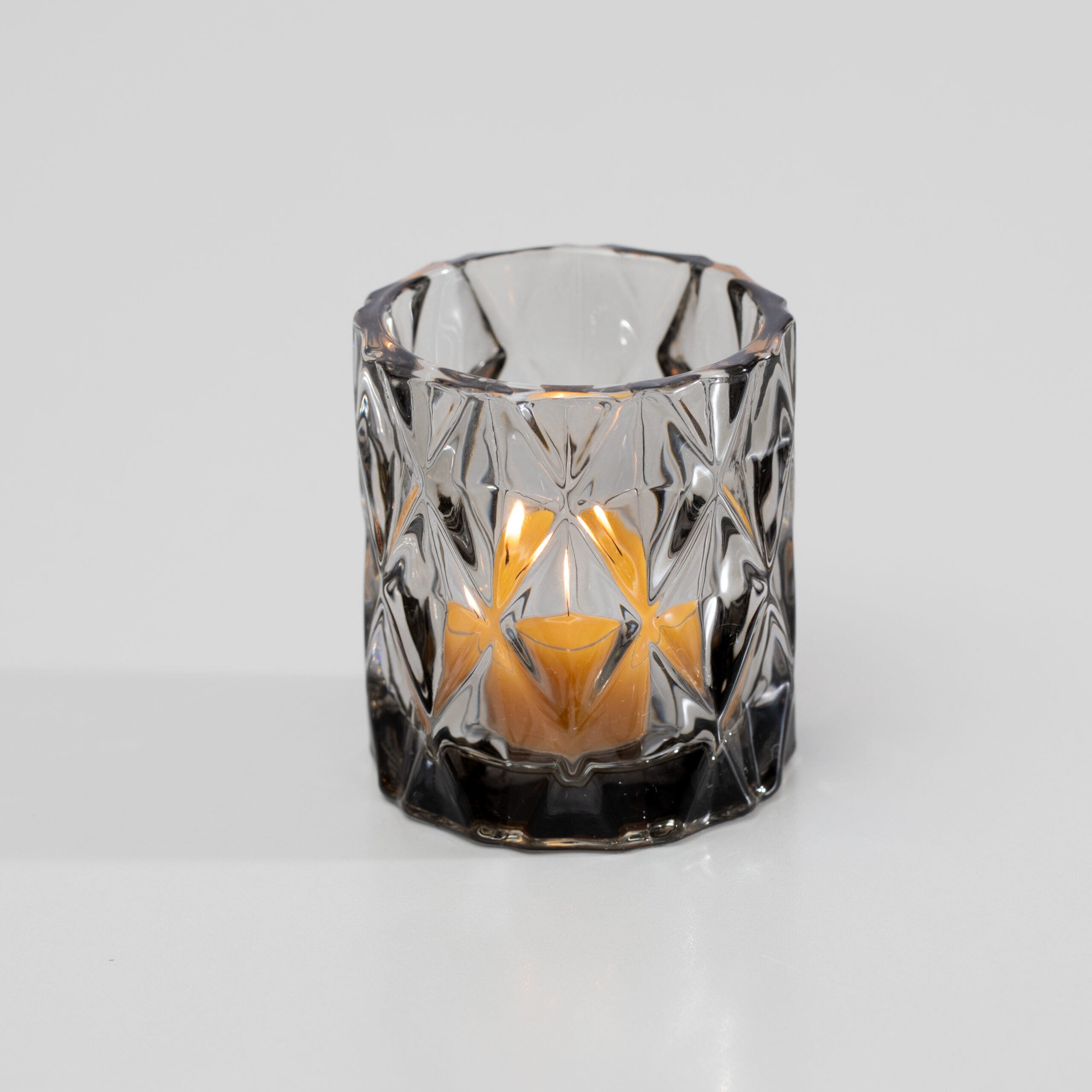 Sleek and sculptural, the smoky-hued Houston Holder brings modern edge to the soft glow of beeswax votives. Faceted geometry plays with light and shadow, creating a dynamic city-inspired ambiance. Surprisingly substantial for its size, this refined piece elevates any setting with effortless sophistication—an understated statement designed to shine season after season.
