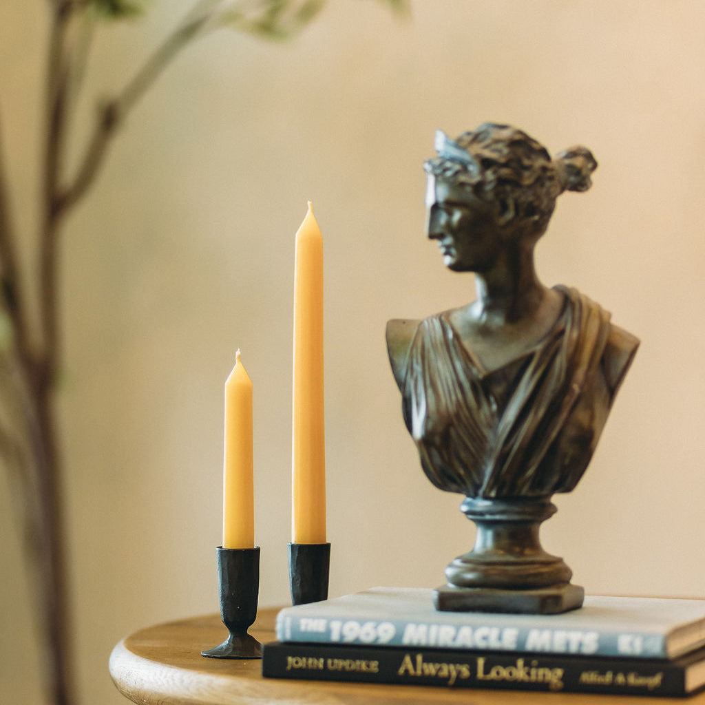 Crafted from sturdy cast iron, the Marfa Holder is small in scale yet rich in character—rustic, understated, and perfectly suited to showcase pure beeswax tapers and candlesticks. Cast in a hand-sculpted mold, each piece highlights artisan craftsmanship, adding texture and depth to your curated space with quiet authenticity.