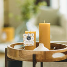 Embossed with the iconic hexagonal pattern of true honeycomb, our Pressed Honeycomb Pillar brings texture, charm, and a quiet touch of whimsy to any space. Hand-poured and carefully pressed, it offers a longer, luminous burn, releasing gentle honeyed notes and natural negative ions that help refresh the air. Light it, and your room fills with warmth, a subtle lift in mood, and the comforting glow of home and hive.