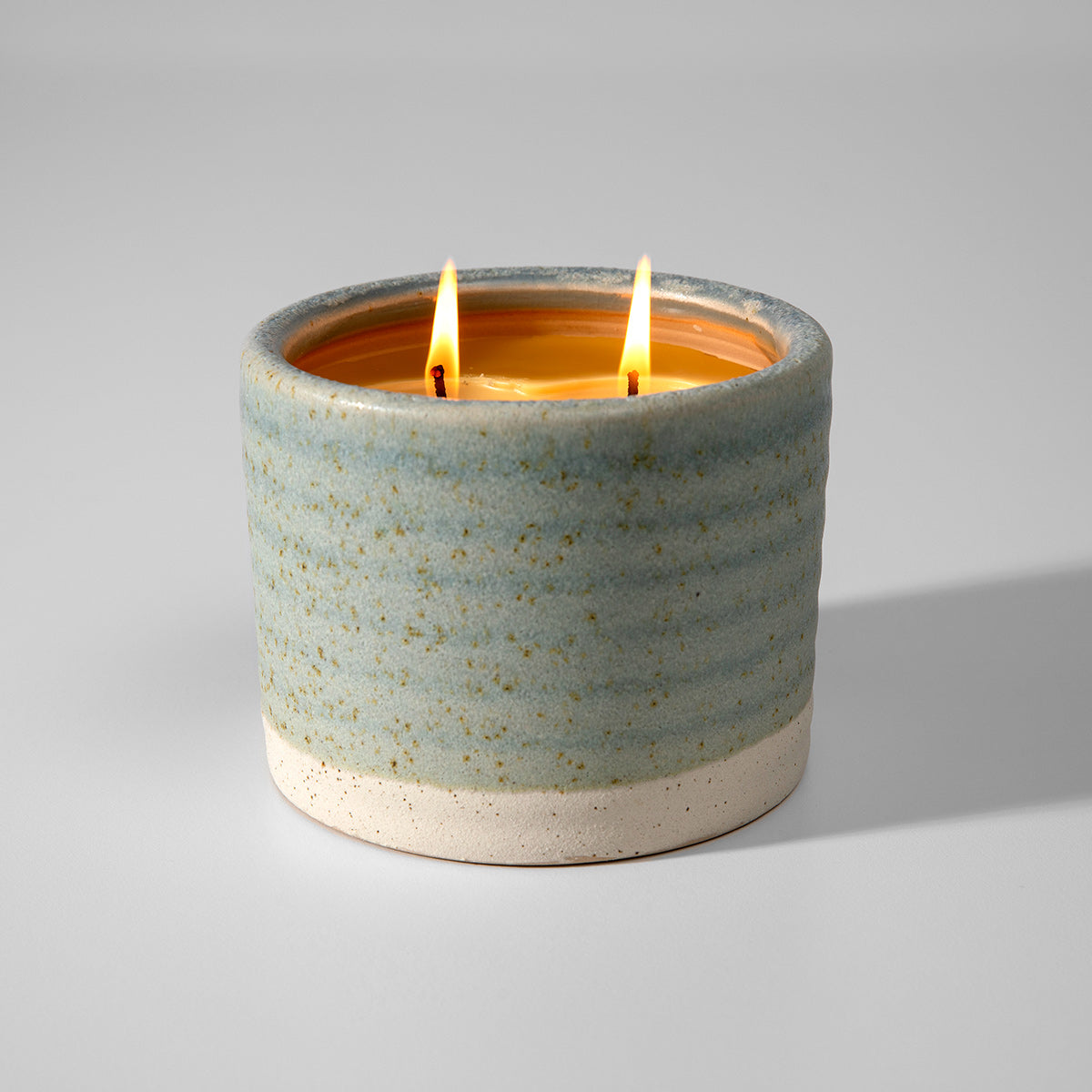 Like the gentle rhythm of waves upon a sunlit shore, the Fulton radiates calm and quiet elegance. Its artisan ceramic vessel pairs warm white with soft, cool blue, a timeless union of coastal tones. As pure beeswax burns within, golden light and delicate honeyed notes fill the air, creating an atmosphere of effortless serenity. A customer favorite since its debut, the Fulton brings elevated tranquility to any space.