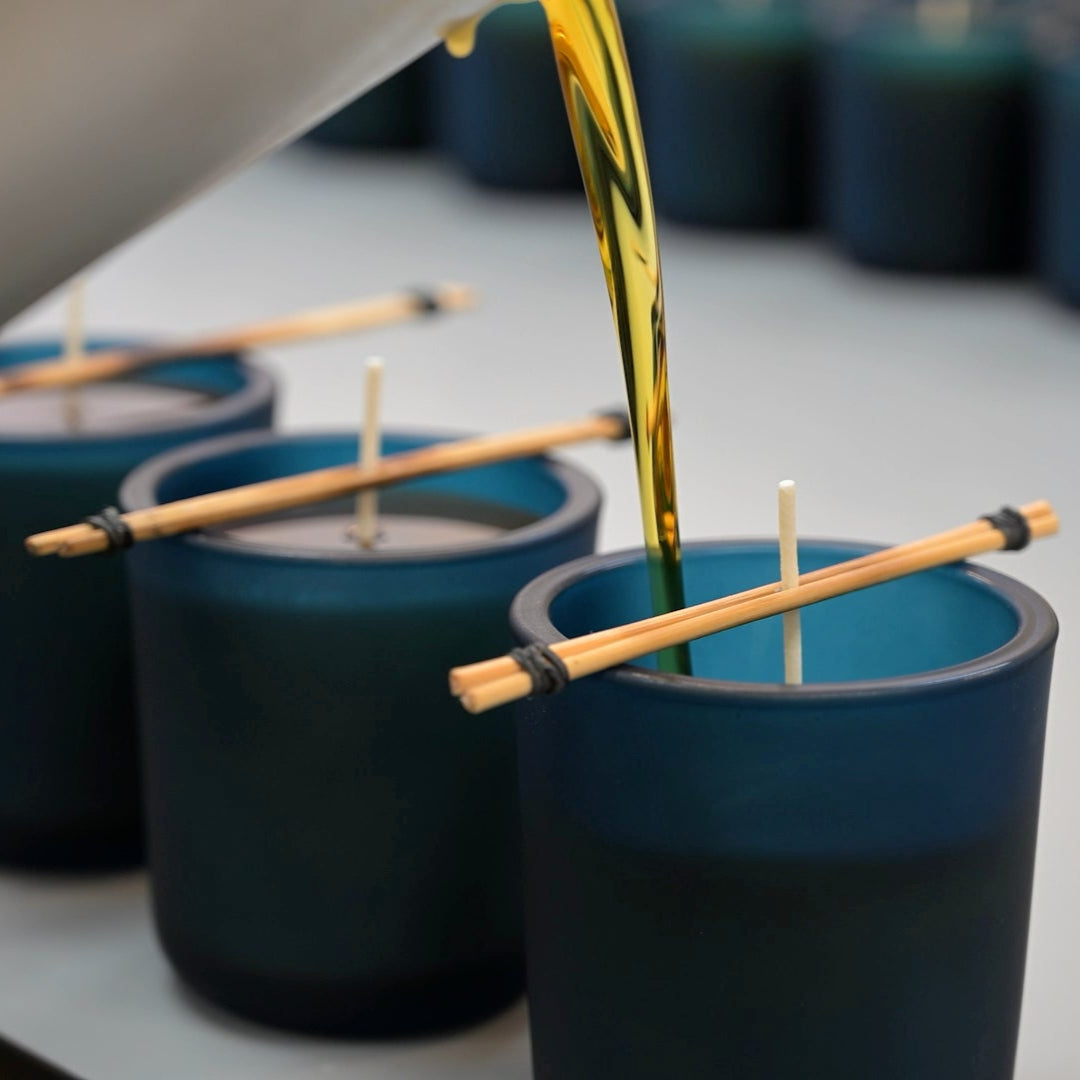 Candle making is both art and science — a practice steeped in patience and intention. We pour each candle by hand in small batches, paying careful attention to temperature, timing, and technique. Every cotton wick is centered by hand, every detail considered and perfected.