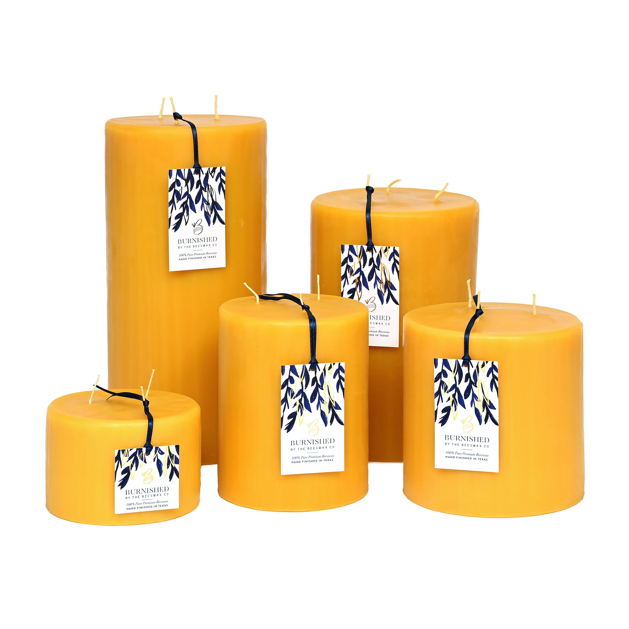 Our Burnished Three-Wick Pillars are the pinnacle of beeswax artistry—crafted for the true candle connoisseur. Made from 100% pure, ethically sourced beeswax, each pillar is meticulously hand-burnished to reveal a soft, luminous texture. Naturally honey-scented and clean-burning, the three wicks cast a generous, sunlike glow, filling your space with warmth and serene ambiance. These sizable 5–6" diameter pillars are a statement of refined taste, designed for those who appreciate the extraordinary in every detail.
